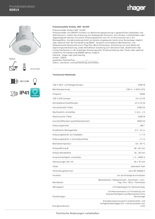 EE815 Czujnik obecności Hager EE815 360 ° IP41