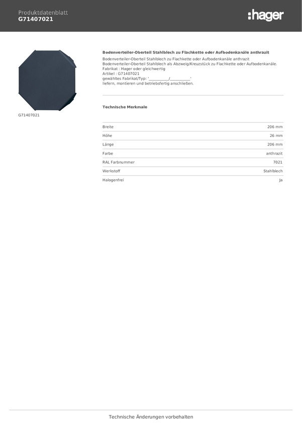 G71407021 Akcesorium do listw Tehalit Część górna 206 mm antracytowy 1 szt.