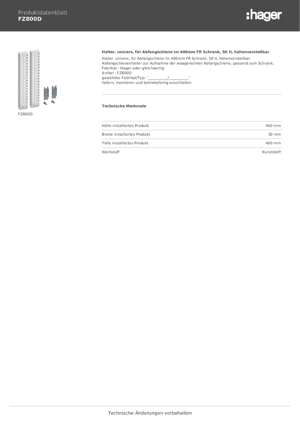 FZ800D Hager FZ800D Uchwyt tworzywo sztuczne biały 1 szt.