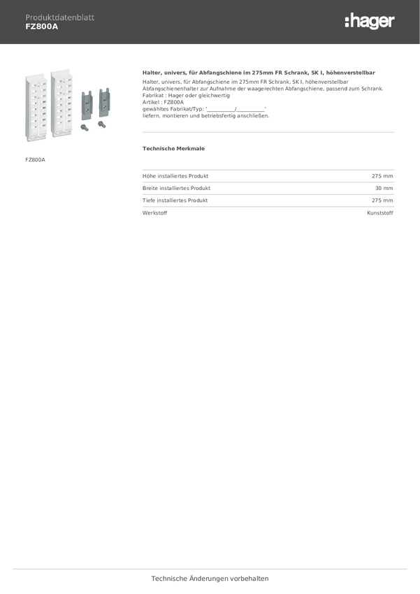 FZ800A Hager FZ800A Uchwyt tworzywo sztuczne biały 1 szt.