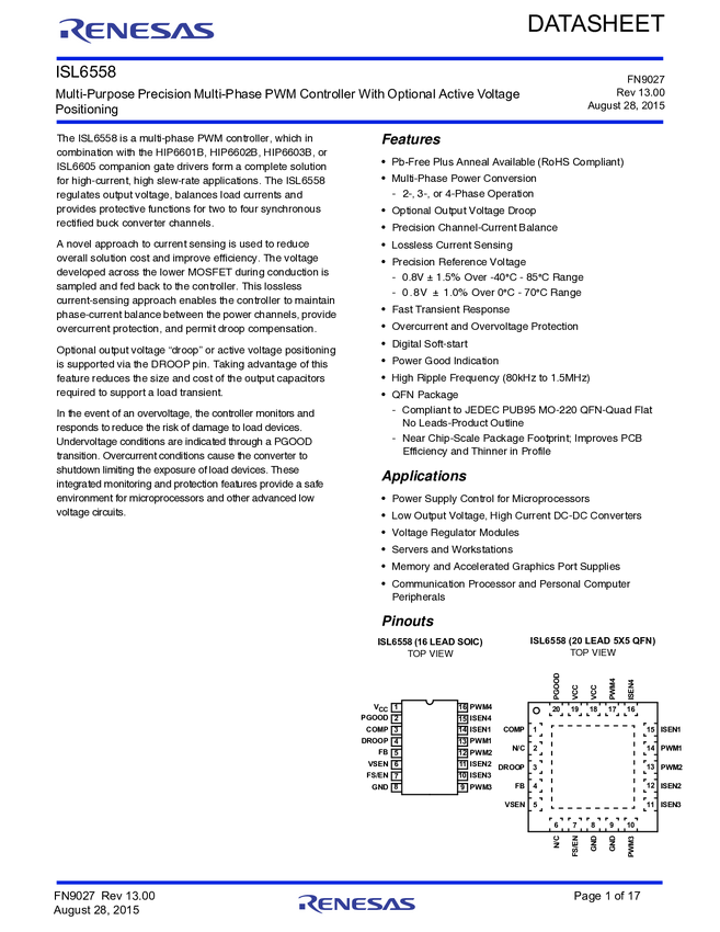 - ISL6558, ISL6558CBZA-T, ISL6558CRZ, ISL6558CRZ-T, ISL6558IRZ, ISL6558IRZA, ISL6558IRZA-T, ISL6558IRZA-TK, ISL6558IRZ-T, ISL6558IRZ-TK