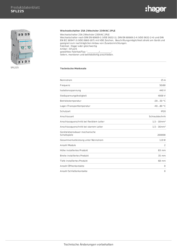 SFL225 Przełącznik kołyskowy Hager SFL225 1 szt.