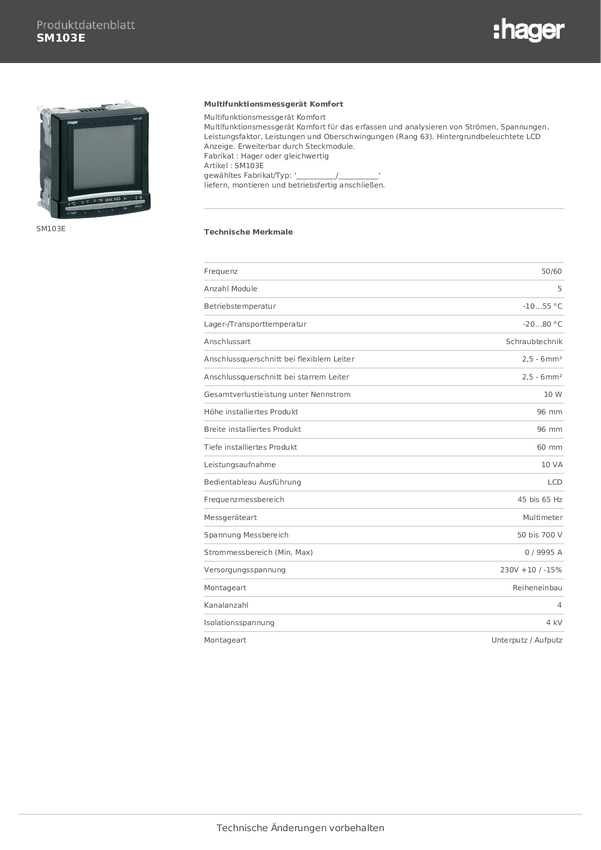 SM103E Wielofunkcyjne urządzenie pomiarowe Hager SM103E 1 szt.