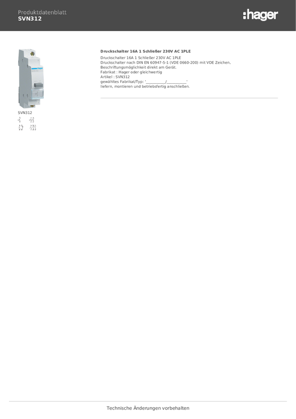 SVN312 Przełącznik ciśnieniowy Hager SVN312 1 szt.