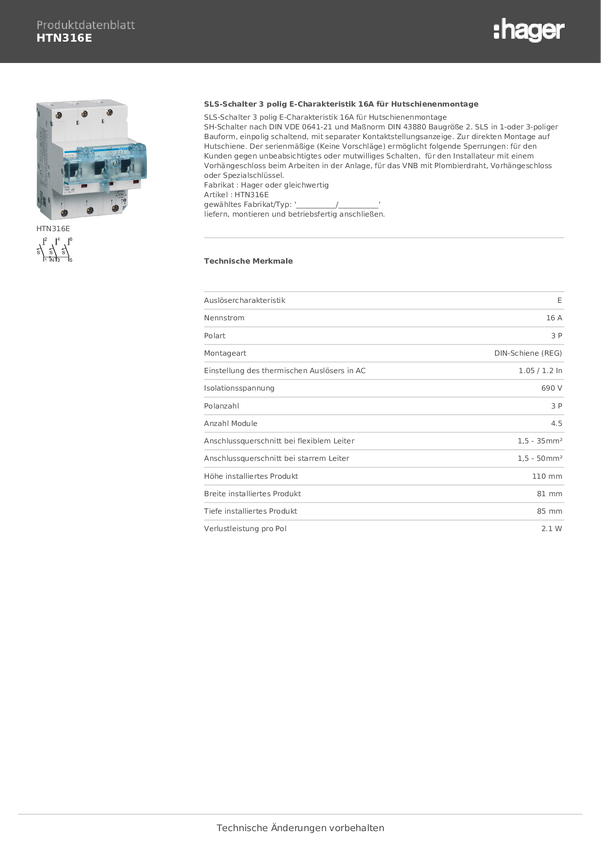 HTN316E Wyłącznik główny bezpieczeństwa Hager HTN316E, 400 V, 16 A
