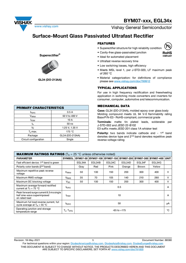 BYM07-xxx Surface Mount Glass Passivated Ultrafast Rectifier