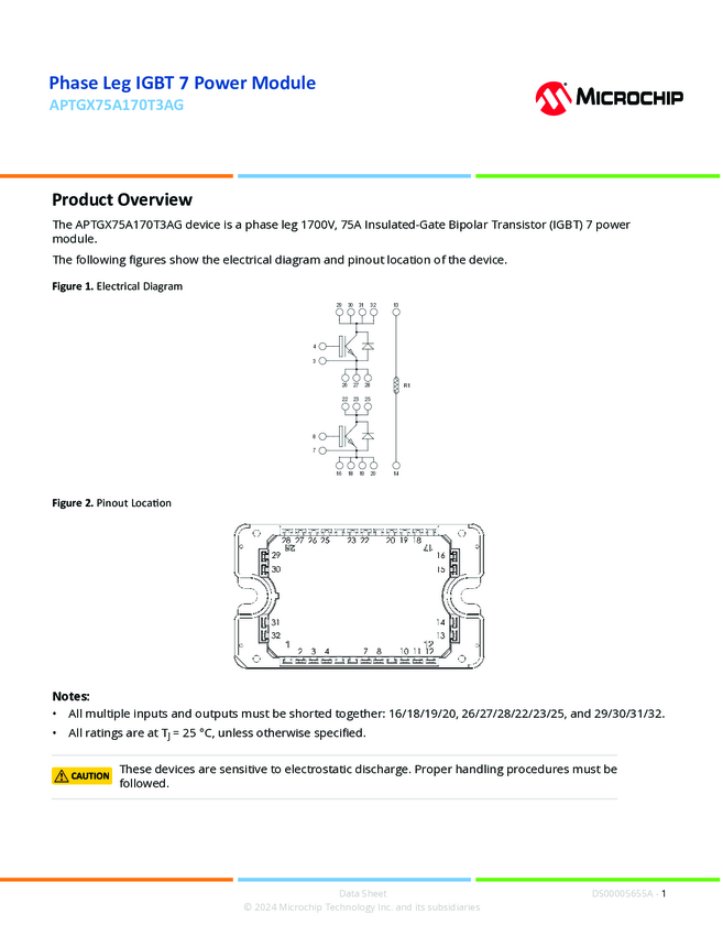 APTGX75A170T3AG 1700V Phase leg IGBT 7 Power Module