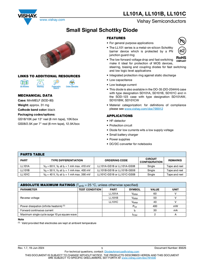 LL101A Small Signal Schottky Diode