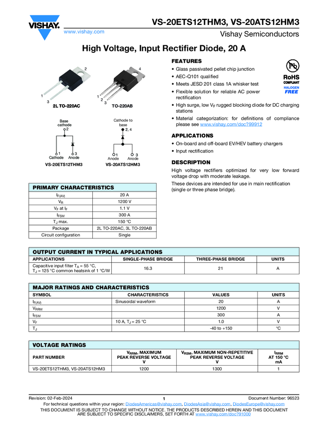 VS-20ETS12THM3 High Voltage, Input Rectifier Diode, 20 A