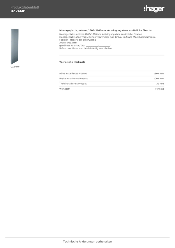 UZ24MP Hager UZ24MP Płyta montażowa stal 1 szt.