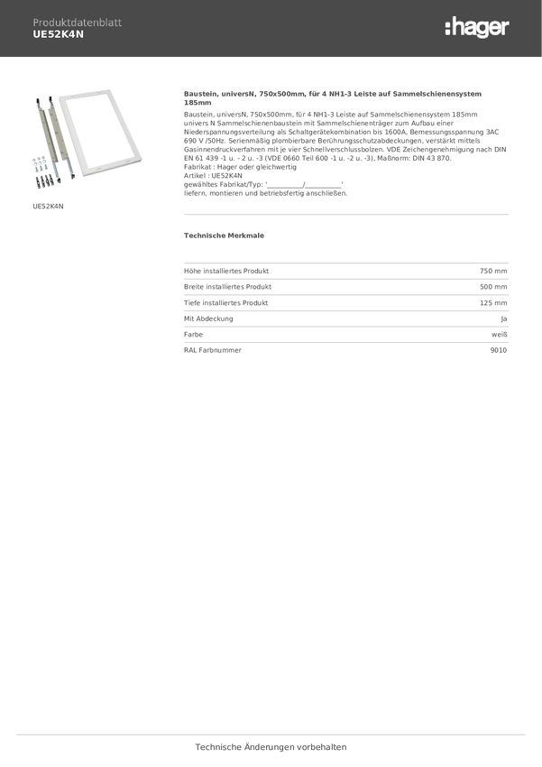 UE52K4N Hager UE52K4N Moduł tworzywo sztuczne biały 1 szt.