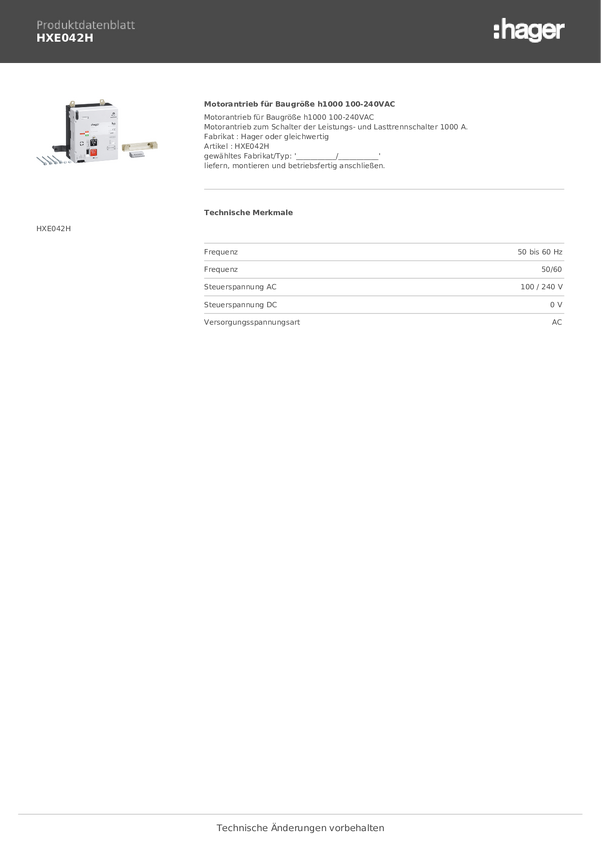 HXE042H Hager HXE042H Napęd silnikowy 110 V, 240 V 1 szt.