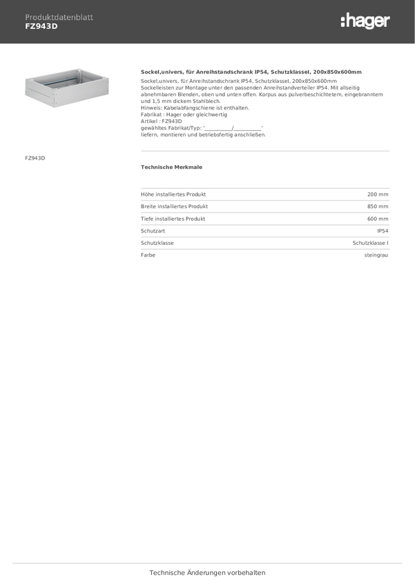 FZ943D Hager FZ943D Listwa podstawy stal szary 1 szt.
