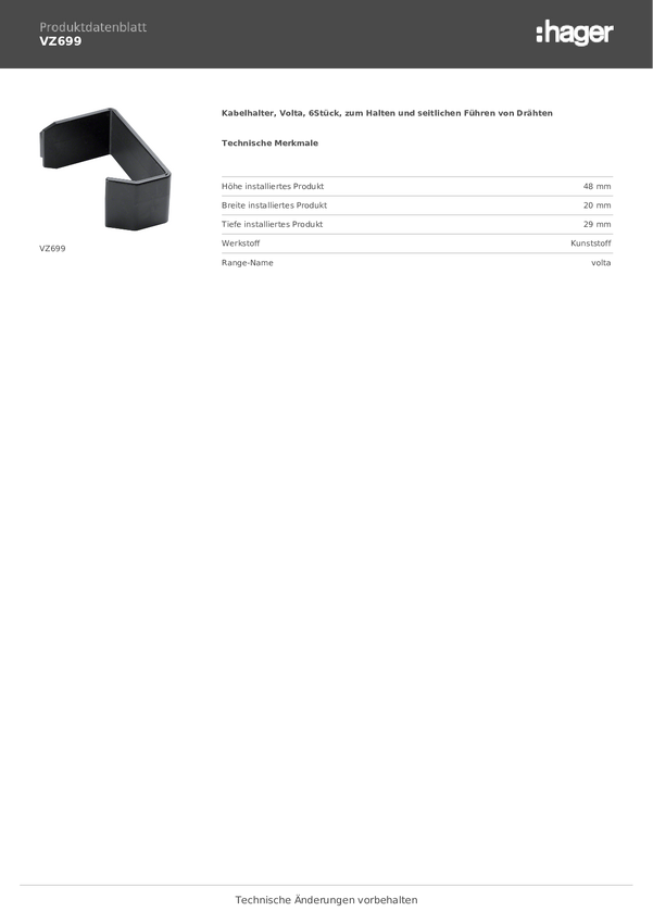 VZ699 Hager VZ699 Uchwyt kabla tworzywo sztuczne czarny 1 szt.