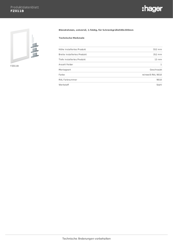 FZ011B Hager FZ011B Rama zakrywająca metal biały 1 szt.