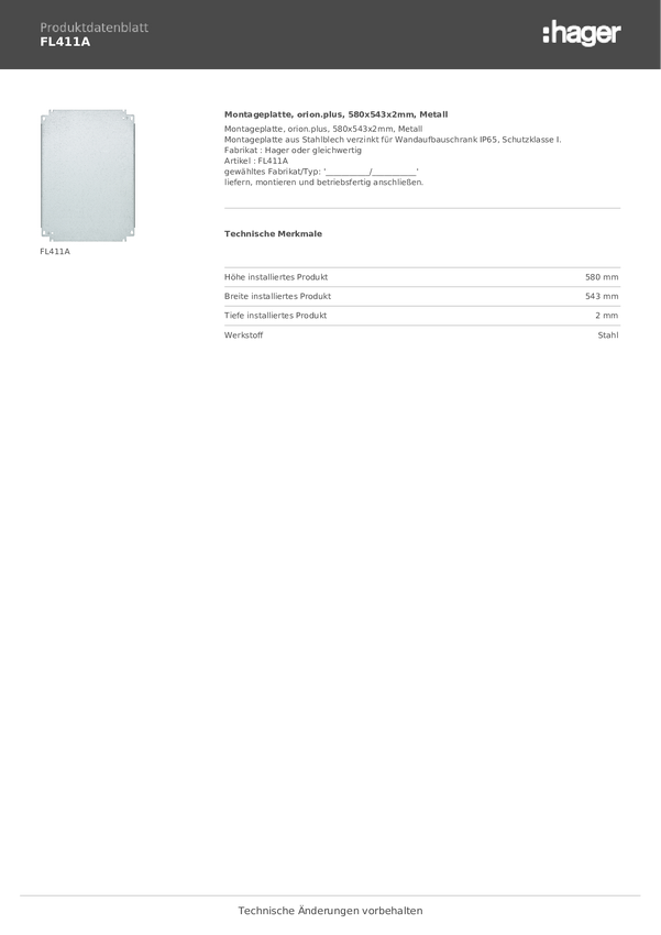 FL411A Hager FL411A Płyta montażowa stal 1 szt.