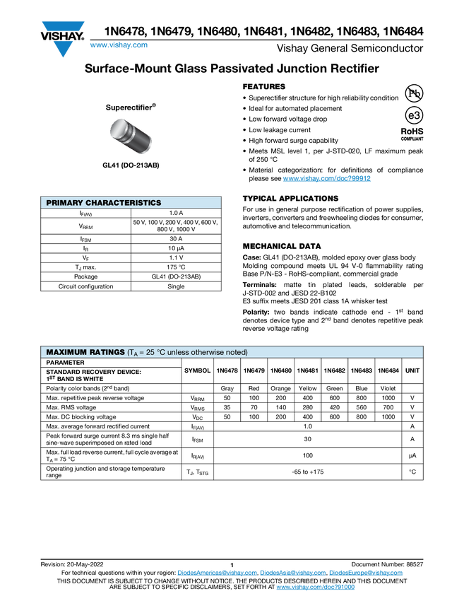 1N6481 Surface-Mount Glass Passivated Junction Rectifier
