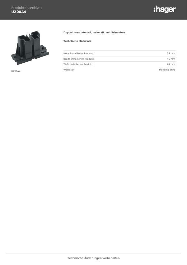 Hager UZ00A4 Dolna część podwójnej wieży czarny 1 szt.
