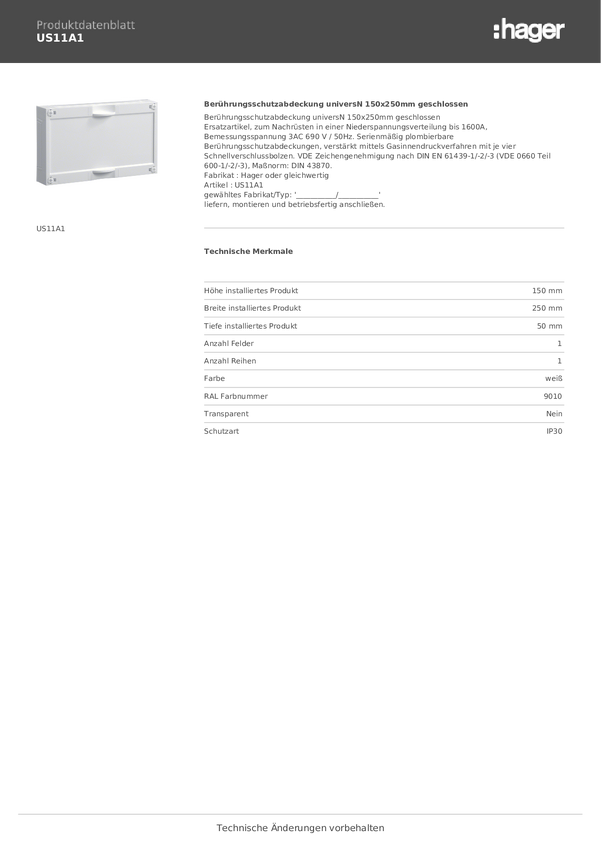 Hager US11A1 Osłona ochronna styków biały 1 szt.
