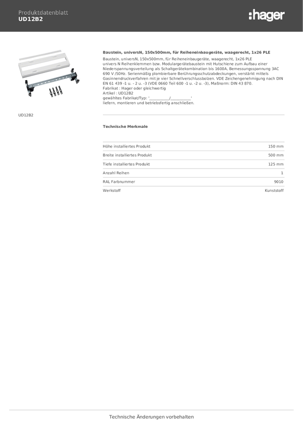 UD12B2 Hager UD12B2 Moduł tworzywo sztuczne biały 1 szt.