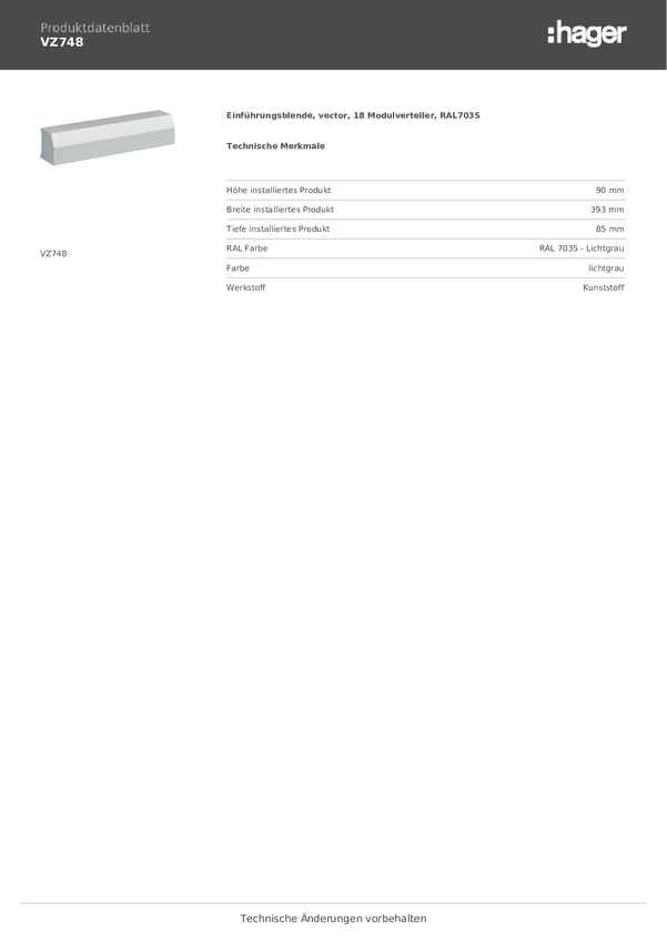 VZ748 Hager VZ748 Panel wprowadzający tworzywo sztuczne 1 szt.