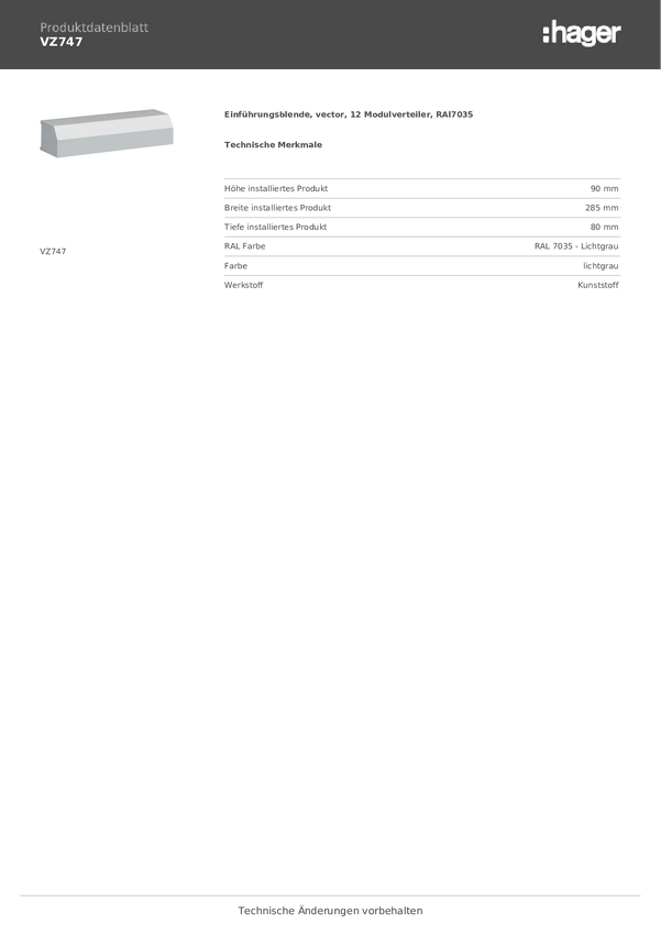VZ747 Hager VZ747 Panel wprowadzający tworzywo sztuczne 1 szt.