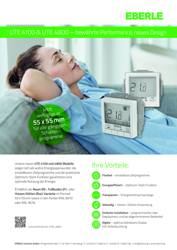 527815455604 Termostat pokojowy Eberle UTE 4100-R-RAL9016-G-55 527815455604 podtynkowy O...