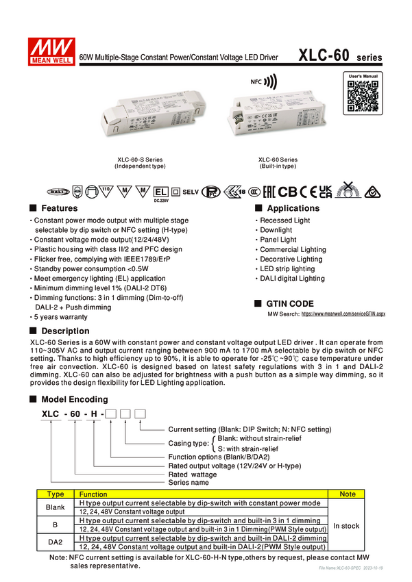 MW Mean Well XLC-60-48-DA2S Sterownik LED 60.0 W 1 szt.