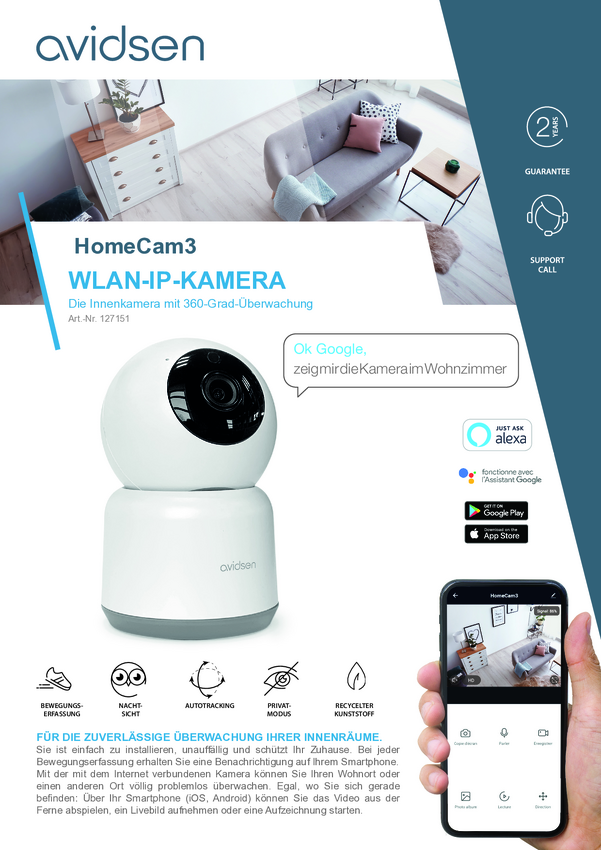 127151 Kamera monitoringu IP Avidsen HomeCam 3 127151 WLAN 1920 x 1080 px
