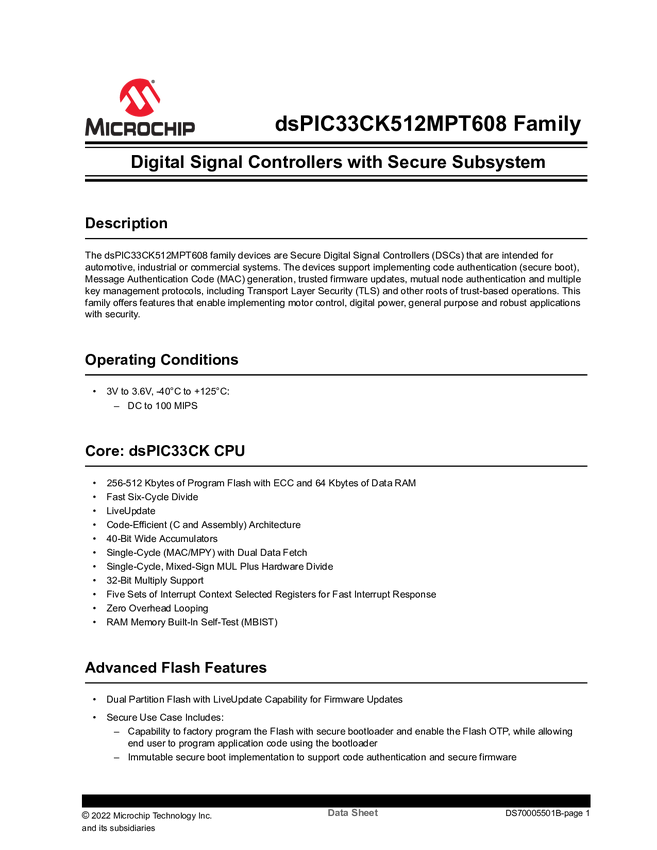 dsPIC33CK512MPT608 Family Data Sheet