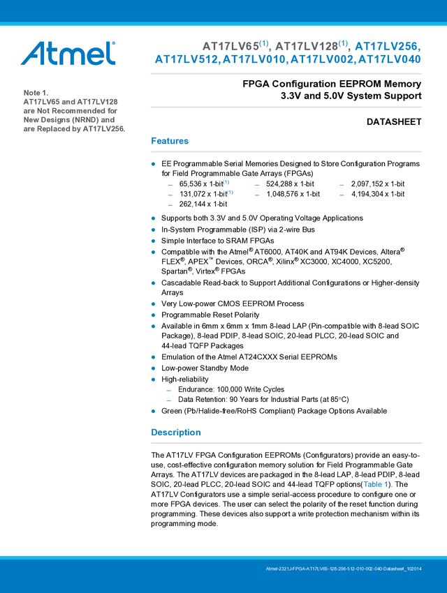 AT17LV040, AT17LV010, AT17LV002, AT17LV256