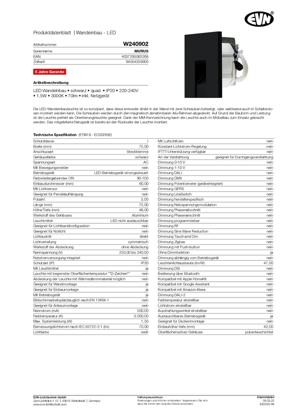 Lampa ścienna do zabudowy LED EVN W240902 W240902 czarny