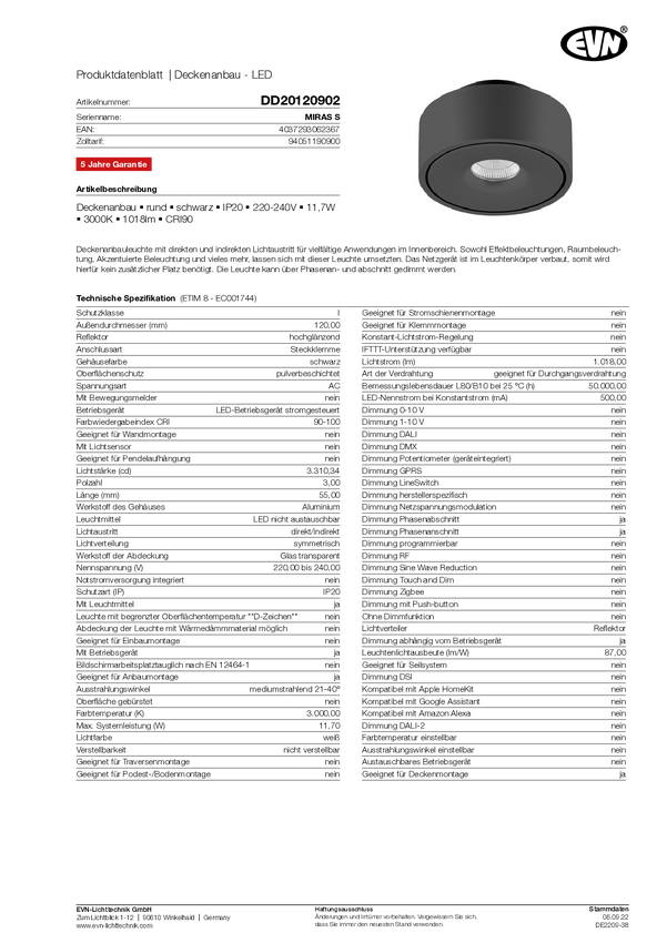 DD20120902 Lampa sufitowa LED EVN DD20120902 DD20120902 czarny