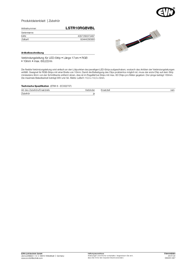 EVN LSTR10RGBVBL Przewód przyłączeniowy LSTR10RGBVBL 1 szt.