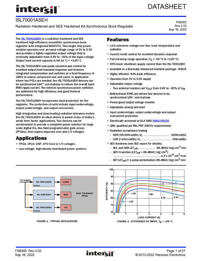 ISL70001ASEHX/SAMPLE Radiation Hardened and SEE Hardened 6A Synchronous Buck Regulator