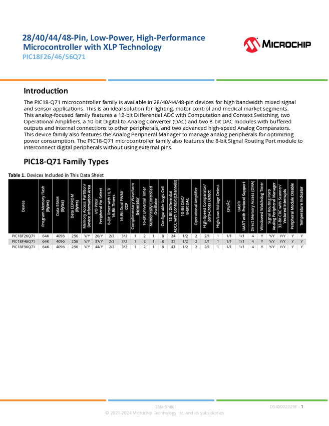 PIC18F46Q71 PIC18F26/46/56Q71 28/40/44/48-Pin, Low-Power, High-Performance Microcontrol...