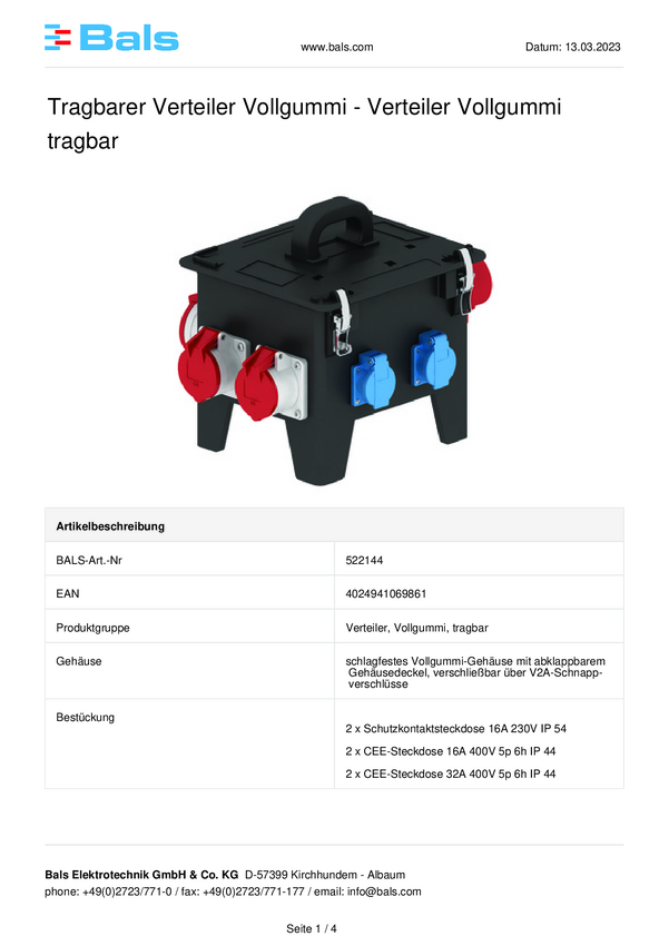 522144 Bals Elektrotechnik Rozdzielacz prądowy CEE 522144 522144