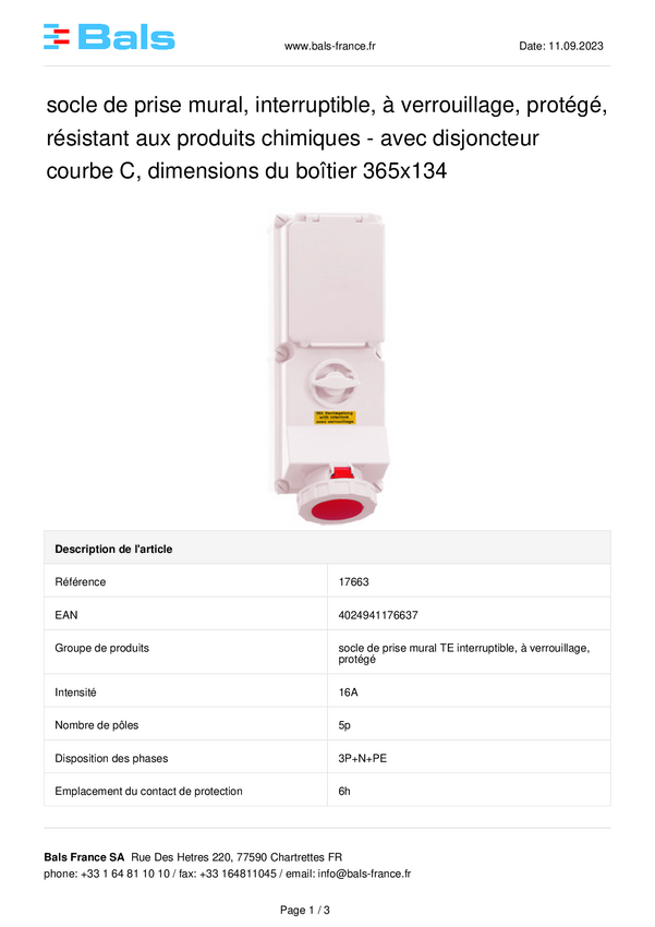 17663 Gniazdo naścienne CEE Bals Elektrotechnik 17663 16.0 A 400 V