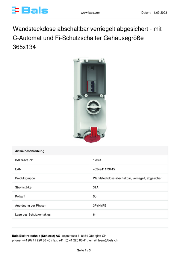 17344 Gniazdo naścienne CEE Bals Elektrotechnik 17344 32.0 A 400 V