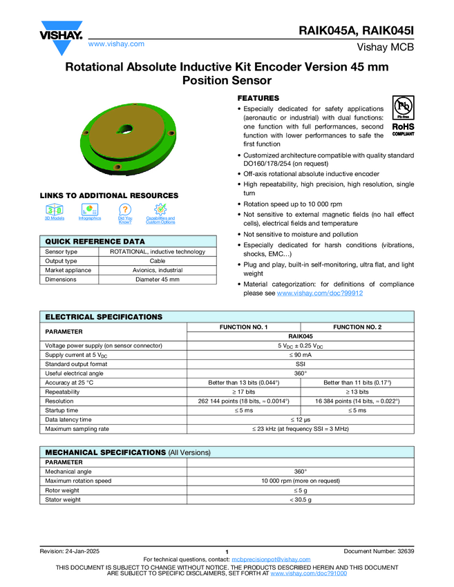 RAIK045I Rotational Absolute Inductive Kit Encoder Version 45 mm Position Sensor