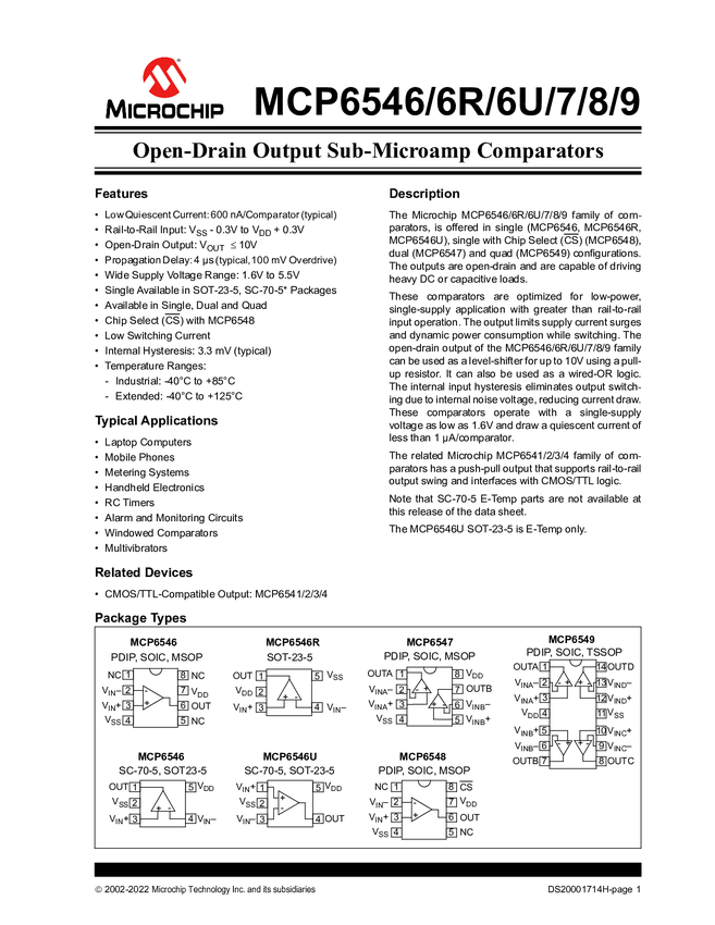 MCP6546/6R/6U/7/8/9 - Open-Drain Output Sub-Microamp Comparators Data Sheet