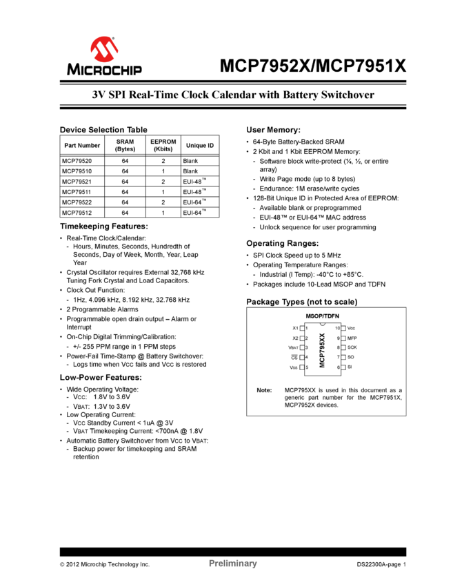 MCP79522 MCP795XX 3V SPI RTCC Data Sheet (04/17/2012)