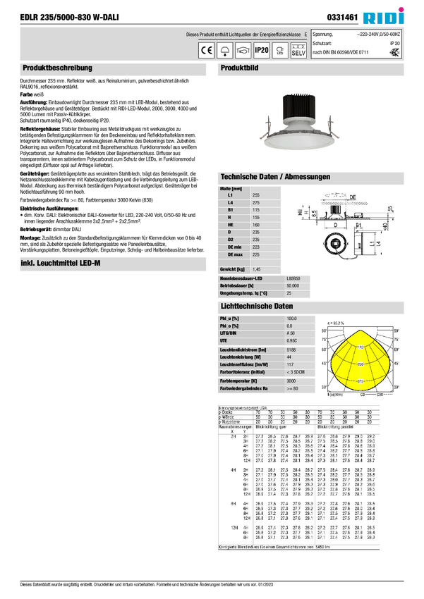 331461 Oświetlenie wewnętrzne LED RIDI 331461 331461 44 W 5190 lm