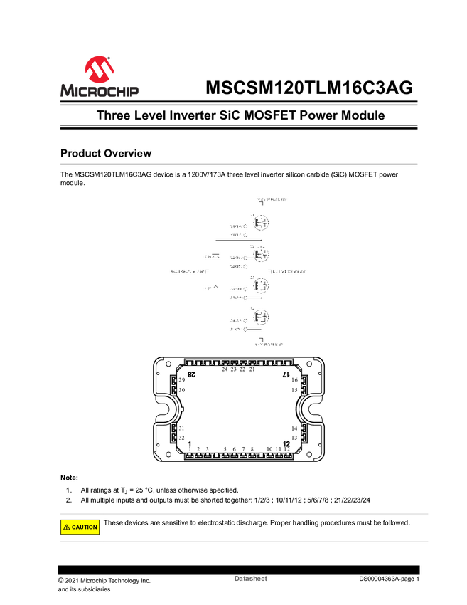 MSCSM120TLM16C3AG 1200V Three Level Inverter SiC MOSFET Module Datasheet