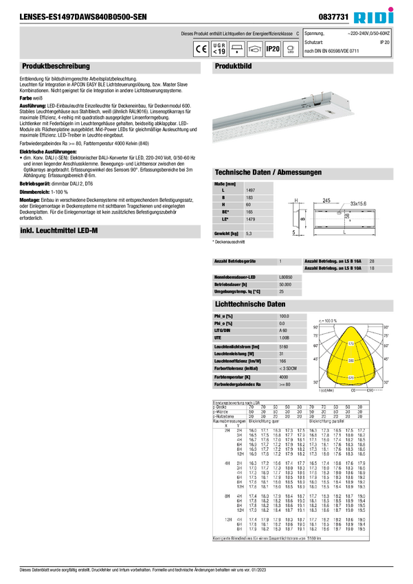 837731 Oświetlenie wewnętrzne LED RIDI 837731 837731 31 W 5160 lm
