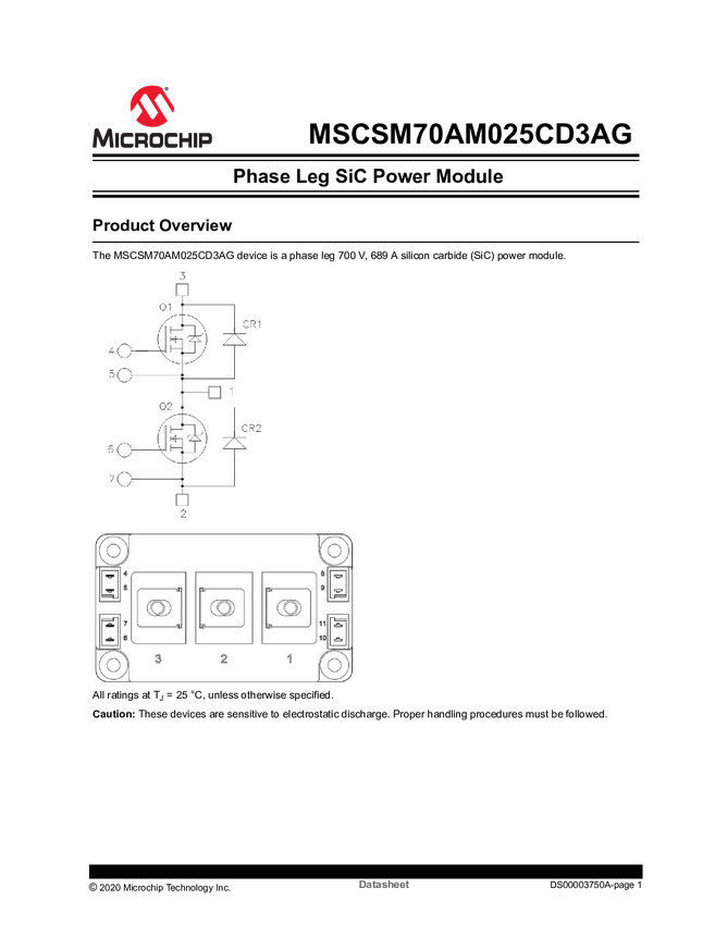 MSCSM70AM025CD3AG 700V Phase Leg SiC MOSFET Module Datasheet