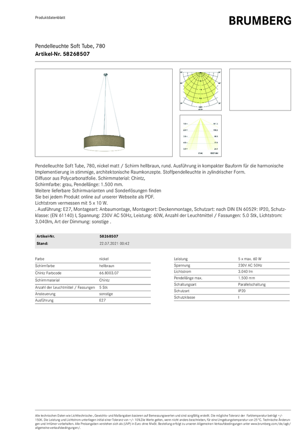 58268507 Lampa sufitowa, podwieszana Brumberg 58268507 58268507 E-27 nikiel