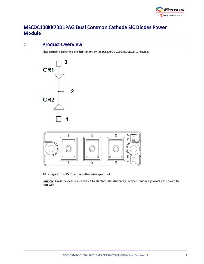 MSCDC100KK70D1PAG 700V Dual Common Cathode SiC Diode Module Datasheet