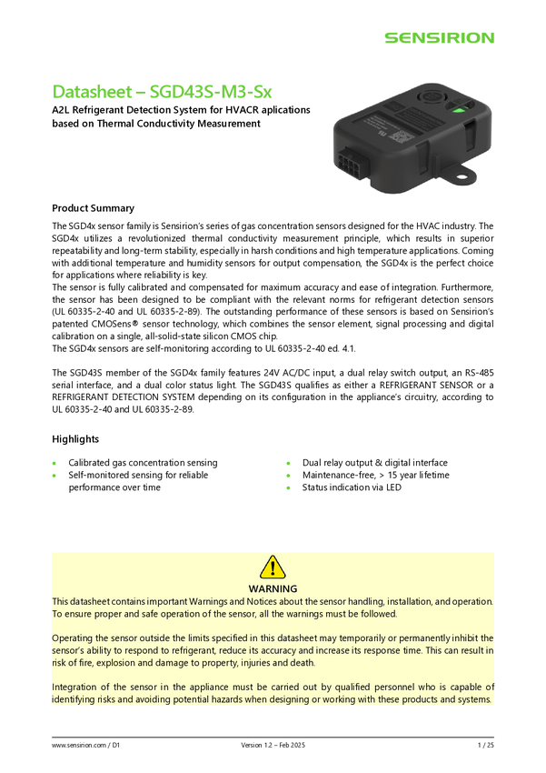 SGD43S-M3-S5 - Flexible and complete refrigerant leakage detection system for modern HVAC systems