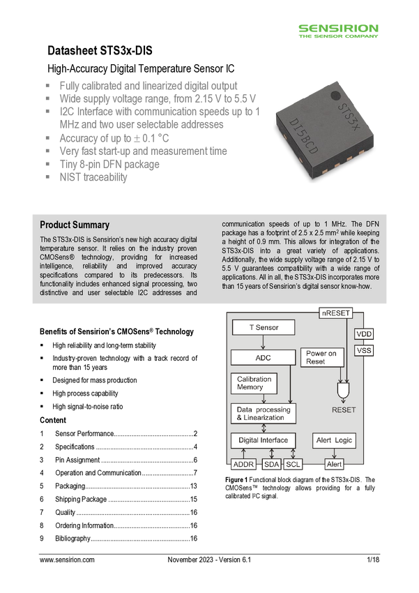 STS30-DIS - ±0.2°C (0-65°C) Digital temperature sensor